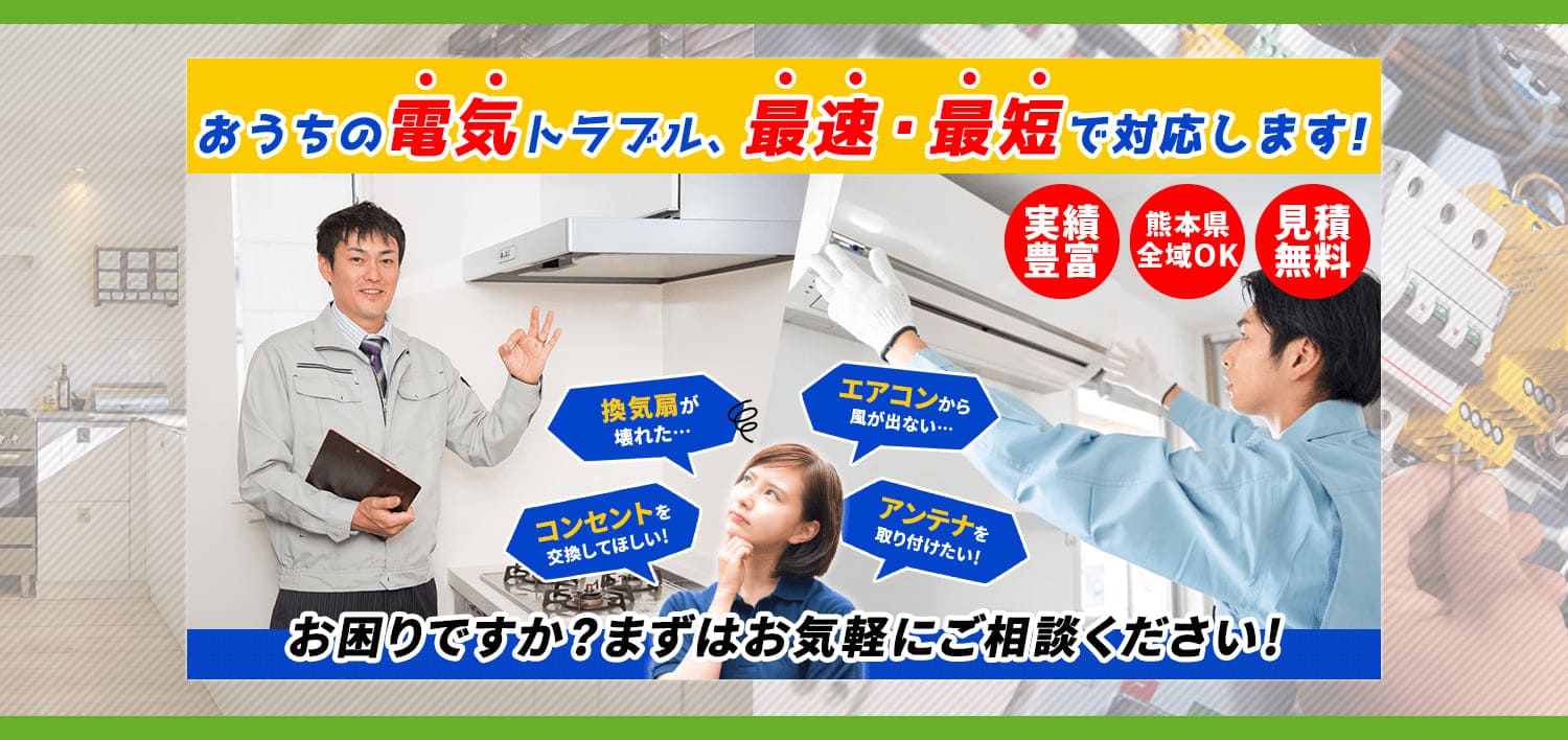 ✅電気工事全般に幅広く対応、国家資格保有者が施工 ✅LED照明の修理・取付で、省エネと快適空間を実現 ✅超地域密着の工事屋さん、熊本県全域に最速・最短で対応 ✅完全自社施工だから低価格、余計な中間マージンなし ✅明朗会計と安心対応、累計20,000件以上の実績 |