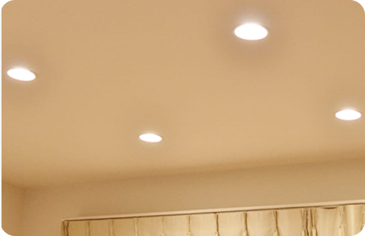 部屋の天井にダウンライトをつける、キッチンにスポットライトをつける、間接照明をつけたい、などの場合も、お気軽にご相談ください。
